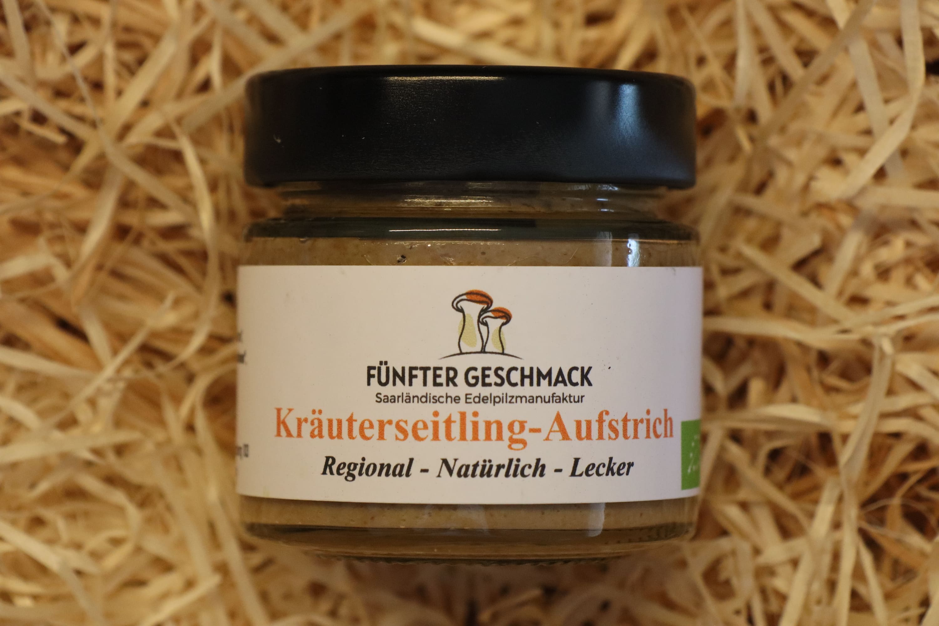 Bio Aufstrich aus Kräuterseitlingen – cremig, aromatisch & natürlich. Genuss pur auf Brot und Baguette. Hergestellt aus eigenen Edelpilzen und in Handarbeit.